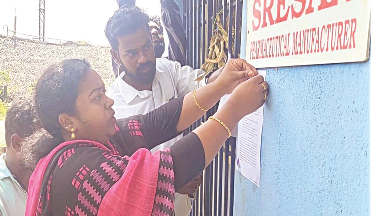 காஞ்சிபுரம் மண்டல மருந்து கட்டுப்பாட்டுத் துறை அதிகாரி மணிமேகலை நடவடிக்கை எடுத்தார். ஆலை பூட்டப்பட்டிருந்ததால், வாயிலில் நோட்டீஸ் ஒட்டப்பட்டது.
