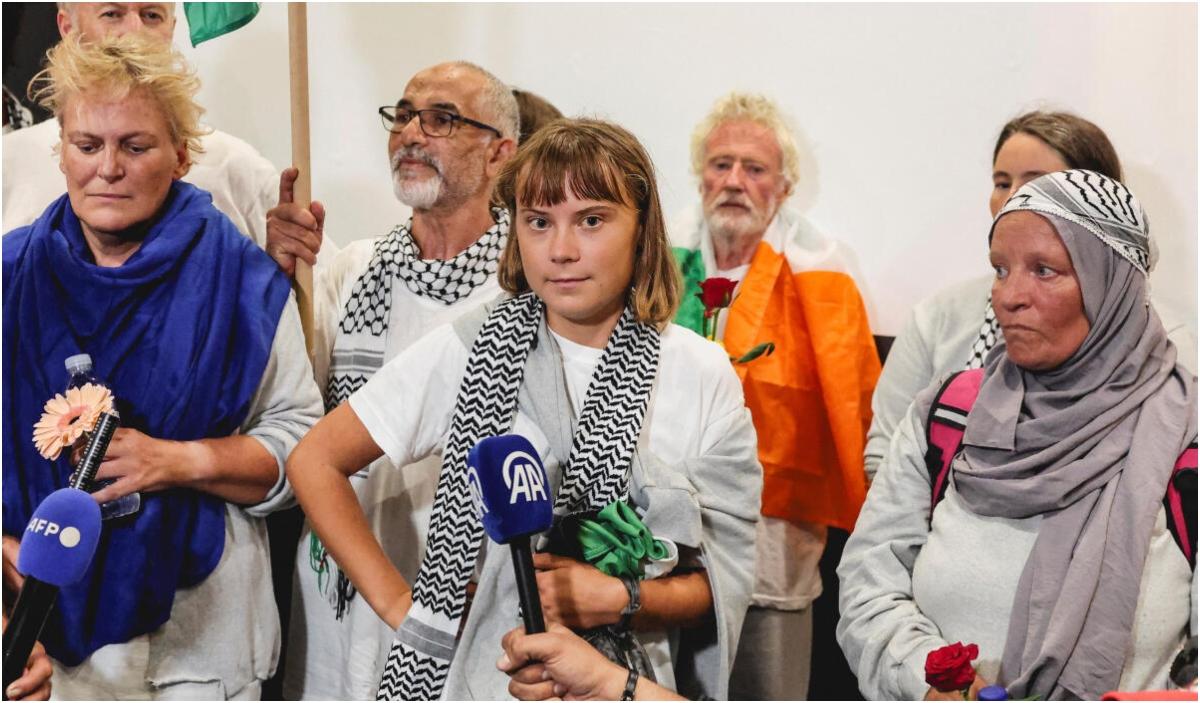 பாலஸ்தீனின் காசா பகுதி மக்களுக்கு நிவாரண உதவிகள் அனுப்பும் நோக்கில், கிரெட்டா தன்பெர்க் உட்பட சுமார் 500 சமூக செயற்பாட்டாளர்கள், 50 படகுகளில் கடந்த ஆகஸ்ட் மாத இறுதியில் ஸ்பெயின் நாட்டின் பார்சிலோனாவில் இருந்து புறப்பட்டனர். ஆனால் இஸ்ரேல் கடற்படை அந்த படகுகளை கடலில் இடைமறித்து, பயணிகளை கைது செய்தது.